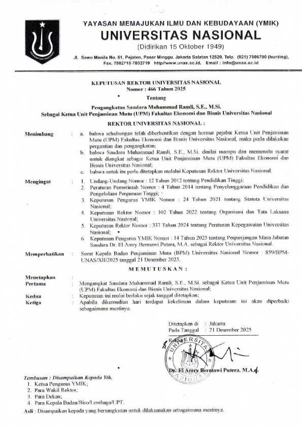 fAKULTAS EKONOMI DAN BISNIS SK Penjaminan Mutu SK Rektor – Staf UPM FEB UNAS – Ayu Nifani SK Rektor – Staf UPM FEB UNAS – Melawati